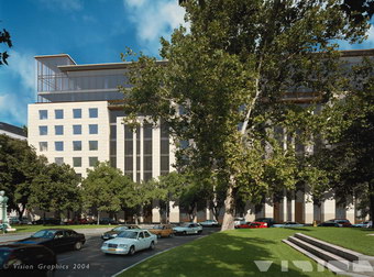 Fotóba illesztett külső kép: irodaház fotorealisztikus látványterve
